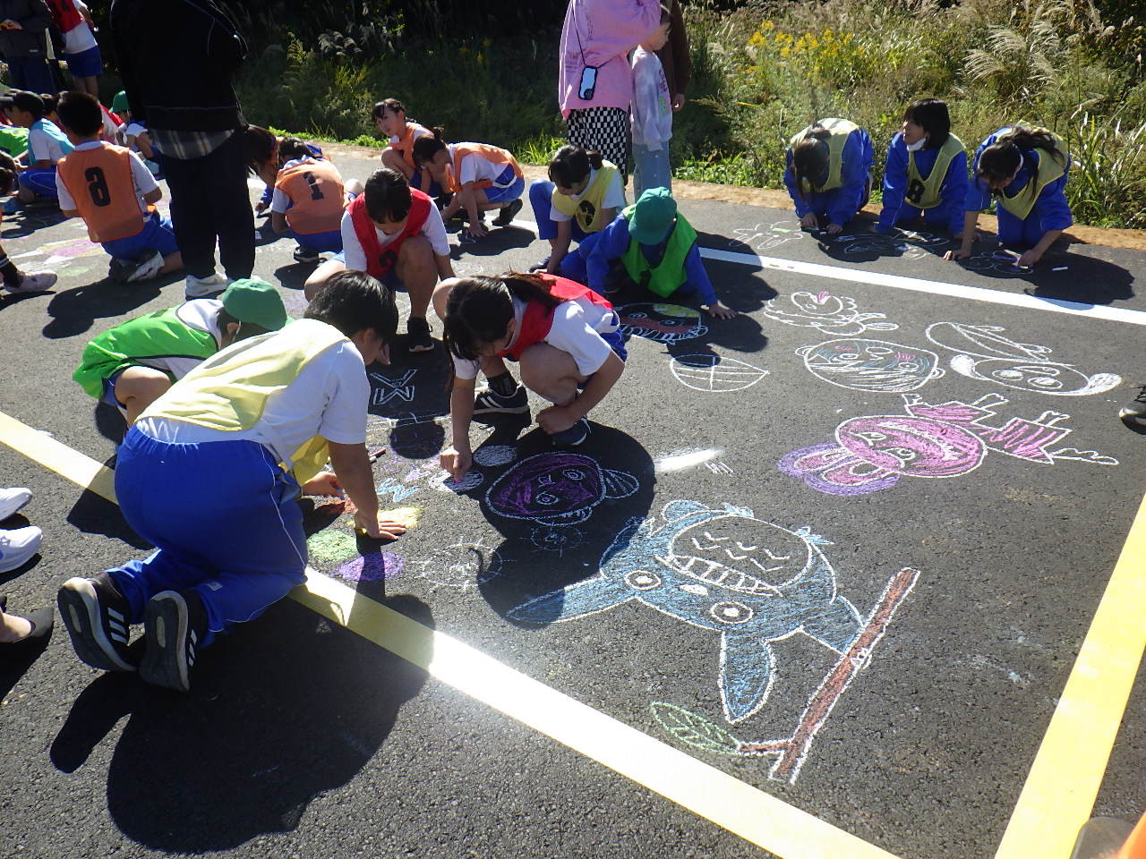 できたばかりの道路に落書き体験🤭楽しそう~